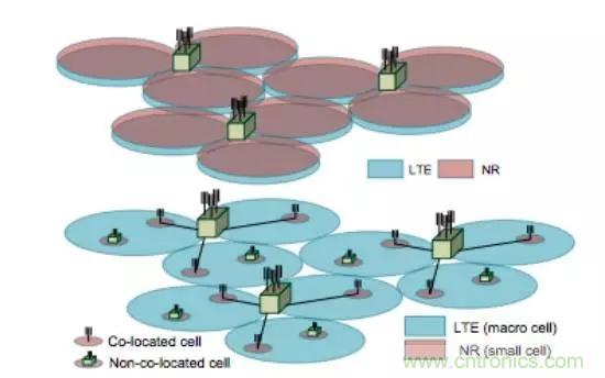 5G基站(gNB)也可作為微站,與現有的LTE基站(eNB)共站或非共站部署,解決室內或熱點覆蓋。