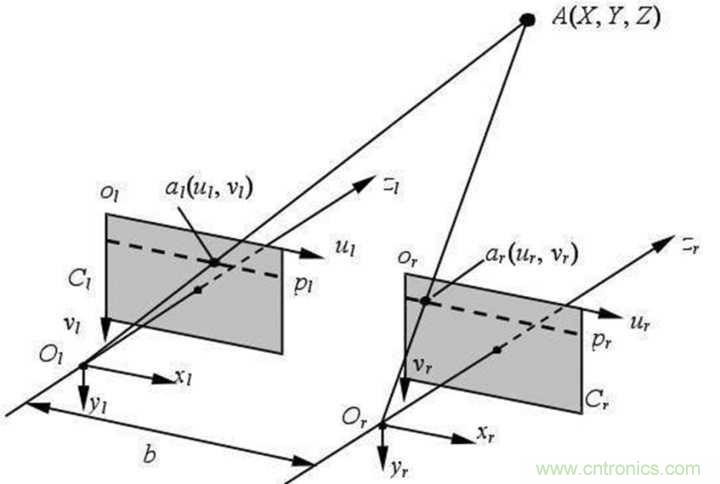 雙目視覺的基本原理是利用兩個平行的攝像頭進行拍攝,然后根據兩幅圖像之間的差異(視差),利用一系列復雜的算法計算出特定點的距離,當數據足夠時還能生成深度圖。