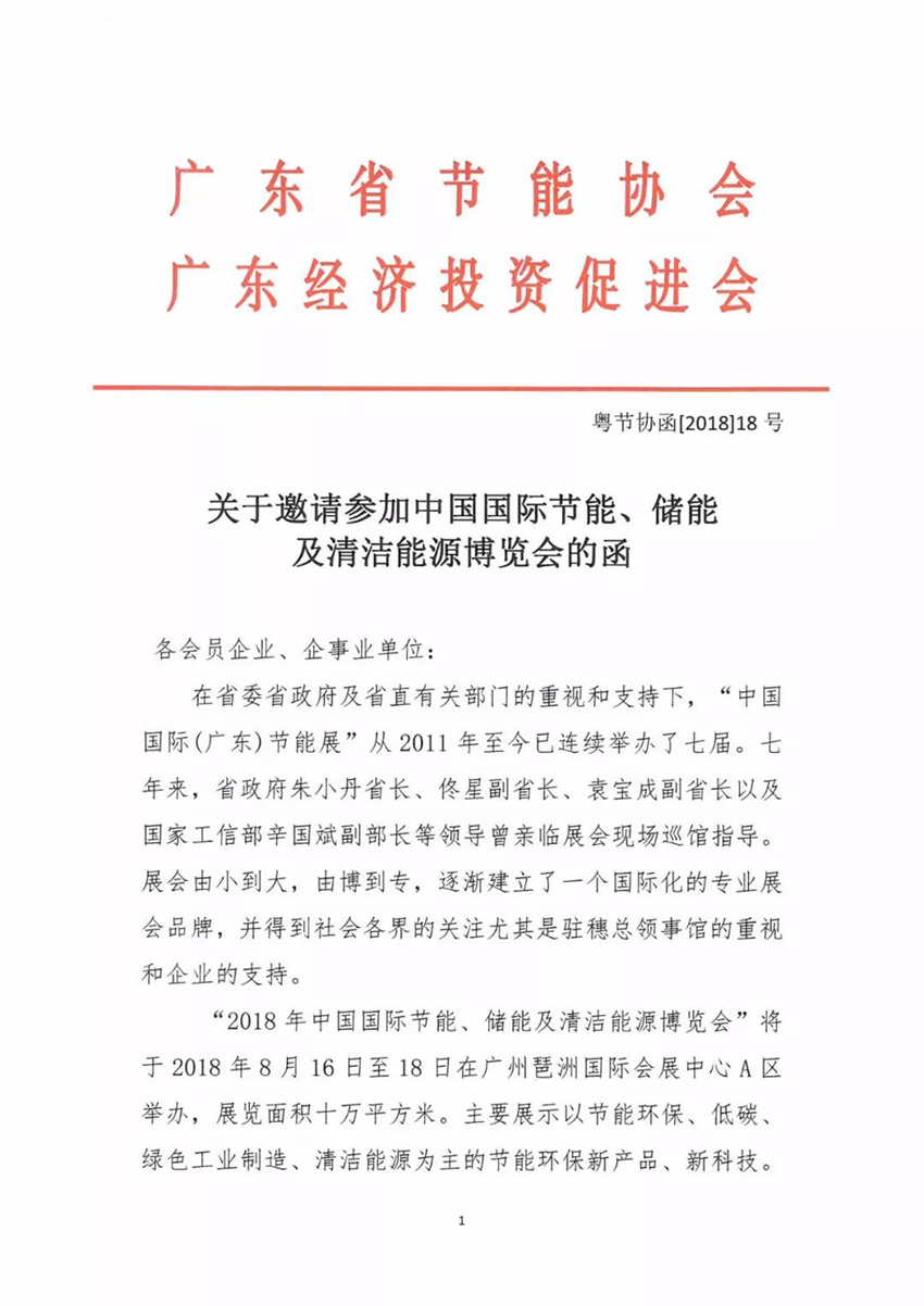【導讀】關于邀請參加中國國際節能、儲能 及清潔能源博覽會的函。
