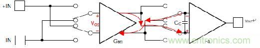 圖4顯示了后半個周期。在這里,兩組開關都配置為通過未改變的方式傳遞信號和失調誤差。實際上,輸入信號永遠不會發生相位變化,始終保持不變。由于來自第一時鐘相位和第二時鐘相位的失調誤差極性相反,因此誤差被平均為零。