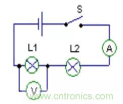此時L2相當(dāng)于一根導(dǎo)線,只有L1和電流表接入電路,電壓表測的是電源電壓。當(dāng)然此時的電壓表是有示數(shù)的。