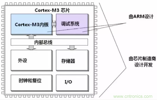 10、ARM公司只生產內核標準,不生產芯片。ST、TI這樣的公司從ARM公司那里購買內核,然后外加自己的總線結構、外設、存儲器、始終和復位、I/O后就組成了自己的芯片。