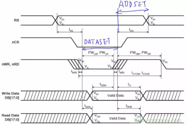 而ADDSET指的是地址建立時間,指的是片選之后到讀/寫操作之前的時間,這是針對SRAM來說的,如果操縱的是TFT,不存在地址線,所以此時的ADDSET就是讀/寫信號結束到RS電平的轉換時間。