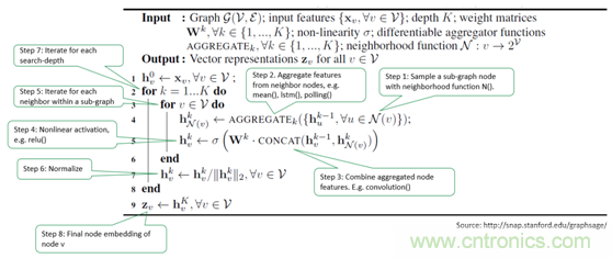 圖 4:GraphSAGE算法的數(shù)學(xué)模型(來(lái)源:http://snap.stanford.edu/graphsage)