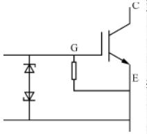 IGBT的柵極-發(fā)射極驅(qū)動電壓VGE的保證值為±20V,如果在它的柵極與發(fā)射極之間加上超出保證值的電壓,則可能會損壞IGBT,因此,在IGBT的驅(qū)動電路中應當設置柵壓限幅電路。另外,若IGBT的柵極與發(fā)射極間開路,而在其集電極與發(fā)射極之間加上電壓,則隨著集電極電位的變化,由于柵極與集電極和發(fā)射極之間寄生電容的存在,使得柵極電位升高,集電極-發(fā)射極有電流流過。這時若集電極和發(fā)射極間處于高壓狀態(tài)時,可能會使IGBT發(fā)熱甚至損壞。如果設備在運輸或振動過程中使得柵極回路斷開,在不被察覺的情況下給主電路加上電壓,則IGBT就可能會損壞。為防止此類情況發(fā)生,應在IGBT的柵極與發(fā)射極間并接一只幾十kΩ的電阻,此電阻應盡量靠近柵極與發(fā)射極。如圖2所示。