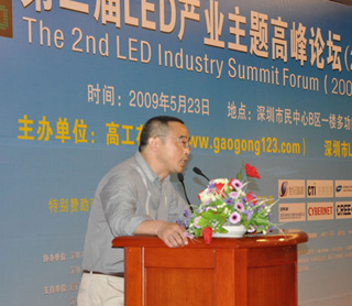 2009年5月23日,由高工在線和深圳市LED產(chǎn)業(yè)聯(lián)合會(huì)共同主辦的第二屆LED產(chǎn)業(yè)主題高峰論壇(2009夏季)在深圳市民中心B區(qū)一樓多功能廳隆重舉辦。來(lái)自香港應(yīng)用科技研究院的蔡振榮博士、清華大學(xué)深圳研究生院副研究員、半導(dǎo)體照明實(shí)驗(yàn)室副主任錢可元教授、康佳光電研究所副所長(zhǎng)馬志凌博士、CREE 中國(guó)區(qū)總經(jīng)理唐國(guó)慶、世紀(jì)晶源研發(fā)中心主任鐘群博士、深圳雷曼光電科技限公司總經(jīng)理李漫鐵、德士達(dá)光電照明科技(深圳)有限公司的總經(jīng)理熊映翔、深圳市華測(cè)檢測(cè)技術(shù)股份有限公司(CTI華測(cè)檢測(cè)機(jī)構(gòu))副總裁/廣州市華德檢測(cè)技術(shù)開發(fā)有限公司(DEKRA-CTI華德)總經(jīng)理聶鵬翔、深圳茂碩電源科技股份有限公司的技術(shù)總監(jiān)蘇周等嘉賓就LED芯片、核心器件、顯示、道路照明、路燈標(biāo)準(zhǔn)與關(guān)鍵技術(shù)、LED驅(qū)動(dòng)電源、LED產(chǎn)品檢測(cè)、認(rèn)證和標(biāo)準(zhǔn)化等方面發(fā)表了主題演講。