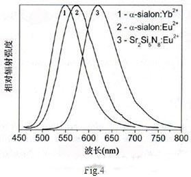 2007年日本材料科學研究所納米陶瓷中心得到的結果是最高的[3],他們采用中心波長為450nm的InGaN藍光LED和光子轉換效率高、在450nm藍光范圍 有強吸收峰、溫度系數(shù)低的三種熒光粉進行了試驗,這三種熒光粉分別為:α-sialon: Yb2+、α-sialon: Eu2+和Sr2Si5 N8: Eu2+。這些熒光粉的特點是發(fā)光效率的熱衰減較小,在
