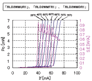 此次開發(fā)的「RLD2WMUR1」、「RLD2WMFR1」、「RLD2WMDR1」,改良了激光發(fā)振時必要的發(fā)光部分的光和電流的關(guān)閉式結(jié)構(gòu)。在脈沖振蕩(pulsation)發(fā)光時,溫度特性或?qū)ぷ麟娏鲿绊戨娏鞯年P(guān)閉式結(jié)構(gòu),一般都是同時控制的,此次ROHM采用獨創(chuàng)的獨立式控制結(jié)構(gòu)。這種自動脈沖式振蕩(pulsation)的特長是成功提高了溫度特性,在高溫環(huán)境下激光振蕩不僅能夠進(jìn)行單一模式化,沒有散熱措施也能以低噪音穩(wěn)定地讀取光盤。同時,也提高了工作電流的電流密度,與其他公司相比-10mA的70mA (DVD方面,機(jī)箱溫度70ºC在情況下)實現(xiàn)了低工作電流。