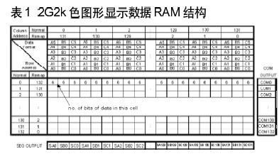 每個象素對應18-bit的數(shù)據(jù),其中每個三色子象素為6-bit。GDDRAM對圖形顯示的象素數(shù)據(jù)具體對應安排見表1。