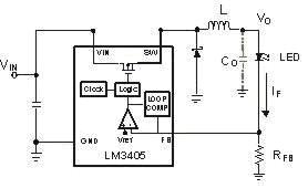 如果直接用電阻RFB來檢測IF,這樣在精度上就可以滿足要求,但是在電阻上將會產生額外的功耗。降低反饋電壓VFB,在同樣的檢測電流IF(圖.2)的情況下可以降低檢測電阻的阻值,這樣就可以使功耗降到最低。最新的LED驅動大多數提供的參考電壓(反饋電壓)在50-200毫伏之間。