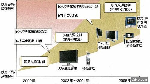 以上介紹照度感測元件的技術發展態勢。由于行動電話與液晶電視的普及化,追求更高的影像畫質同時降低液晶顯示器的耗電量,已經成為相關業者必需克服的課題。