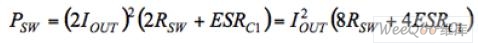 電荷泵的寄生效應導致輸出電壓隨著負載電流的增加而下降。事實上,總是存在2IOUT的RMS電流流過C1和兩個開關(2Rsw),導致產生以下的功耗︰