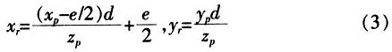 將式(2)帶入式(1)得點P在投影平面的坐標(xr,yr):