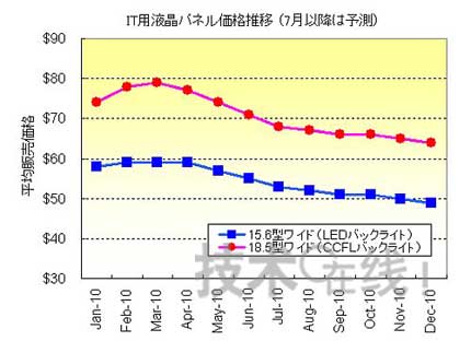 各大主要電視機廠商預計中國等新興市場國家的需求將出現擴大,從2009年底開始積極購買面板。其中,需求偏向于LED背照燈面板,CCFL背照燈面板則以低水平推移。因此,由于背照燈的不同而產生的面板價格差處于逐漸擴大的趨勢。