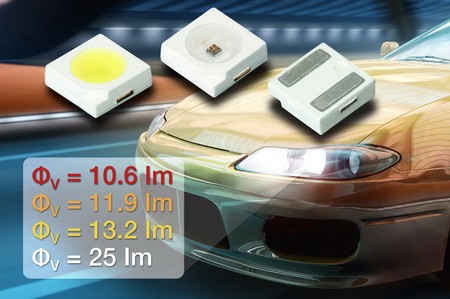 VLMR51、VLMK51、VLMY51和VLMW51器件采用高發光效率的InGan和AllnGaP硅上技術,具有8.5lm~30.6lm的光通量和2850mcd~9750mcd的發光強度。這些LED具有低至100k/W的極低結至環境熱阻,功率耗散高達738mW,從而使驅動電流高達200mA。
