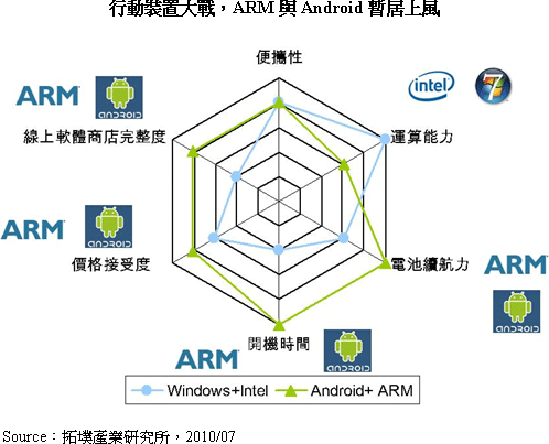 雖然Wintel與ARM和Android在PC及行動裝置領域各有擅場,但在未來行動運算裝置成為成長主力之際,臺灣ICT廠商應該適時調整研發方向及產品策略,將消費者對于Mobile PC的新定義列入考量,提早布局非Wintel戰場。