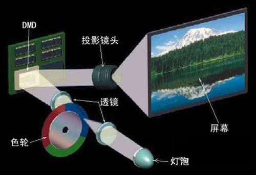 傳統的背投影方案主要是以光源、色輪、圖像引擎芯片、光路、投影的合色、投影物鏡和屏幕的過程組成的。采用激光作為投影光源,可充分發揮激光光源分色分時特性,采用光譜合成以及分時工作的模式,直接應用于照明光學圖像芯片,拋棄過去在光機中一定使用到的UV、紅外、偏振鏡、復眼透鏡這樣的一些光學器件,大幅簡化投影機光路結構。