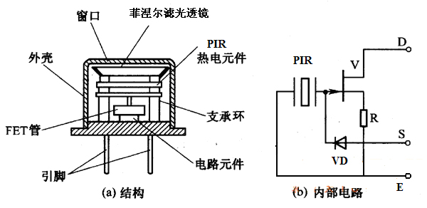圖6:紅外傳感器內(nèi)部結(jié)構(gòu)與內(nèi)部電路圖