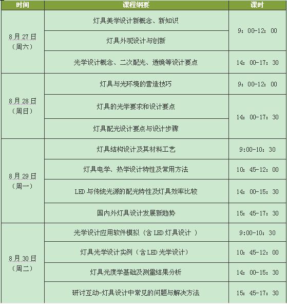 燈具設計的目的第一是為了照明,第二是為了美觀,好的燈具一方面可以陶冶心情,一方面可以為環境創建更好的美觀效果,同時讓人心情舒暢,燈具設計將不在只是著重于功能性或技術性的提升,取而代之的是以裝飾性為訴求的產品,為此,廣東光亞照明研究院通過對五百家燈具企業的調查,整合行業實際需求,于2011年8月于廣州舉辦《燈具設計與技術》專業培訓班,聘請燈具設計領域權威專家擔任主講,聽中央美院專家解析燈具美學新概念,從燈具美學到燈具技術應用,以國外自由開放式教學模式,講師與學員零距離溝通,真正讓學員學以致用。