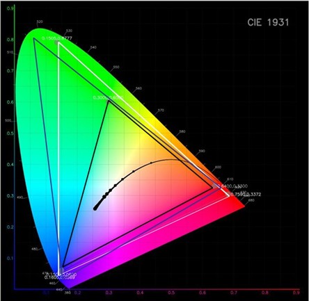 目標(biāo)色域空間的合理設(shè)定十分重要,否則,或者不能實現(xiàn),或者白平衡無法達(dá)到,或者亮度均勻度將受損。
