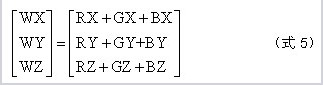 而白色的色坐標(biāo)Wx,Wy以及白色亮度值WY都可以通過RGB三色的XYZ三刺激值的疊加計算得到: