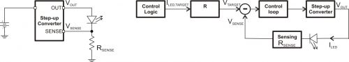 將閃光燈 LED 與一個電流檢測電阻串聯(lián),然后通過一個升壓轉換器來驅動,這是一種簡單的方法。圖 1 描述了這種方法。