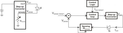圖2使用外部電流檢測電阻的簡單LED 驅動方法