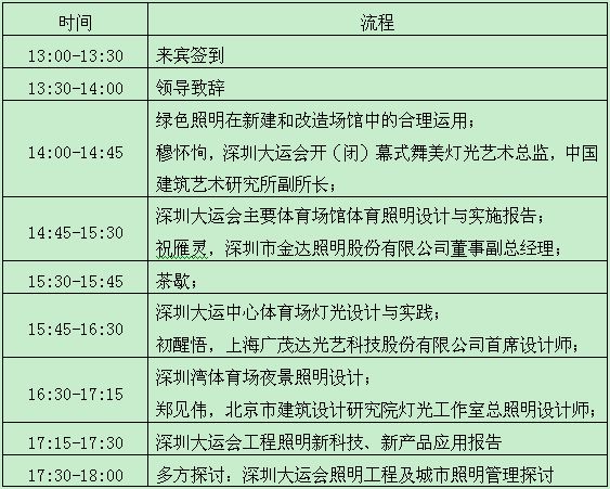 深圳“迎大運城市照明提升工作”是我國城市照明工程的又一個經典之作,為了總結這項工作的成功經驗,為今后類似活動提供城市照明提升工作的參考,更為提升我國城市夜景照明水平、推進城市照明節能環保提供思路,廣州光亞法蘭克福展覽有限公司、阿拉丁照明網等照明行業服務平臺聯合有關單位在深圳舉行“燈光,讓城市更美好——深圳2011年世界大學生運動會照明成果匯報會”,邀請國內外照明行業知名機構和人士參加,分享深圳城市照明的成果,探討未來城市照明的發展方向,進而助推照明行業的發展,讓照明行業為改善我們的城市生活發揮更大作用。