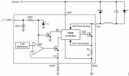 圖5:基于NCL30010的1-30 W DC-DC LED降壓應用
