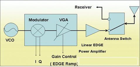 就線性發射架構而言,所使用之功率放大器必須能夠操作在飽和模式(Saturated Mode)與線性模式(Linear Mode)。當手機操作在GSM時為GMSK調變,而GMSK為一固定振幅(Constant Envelope),功率放大器所產生的失真對其影響較小,故此時功率放大器可操作于飽和區,即非線性區,來提高效率。當手機操作于EDGE模式時,是以一種改變振幅與相位的線性調變方式即8PSK調變,也因此對于功率放大器的線性度極為要求,以防止信號失真。