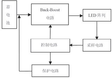 圖2 可知,Buck-Boost 電路將蓄電池電能變換后對LED 陣列供電,采樣電路對流過LED 的電流采樣,將信號傳到控制電路??刂齐娐贩治霾蓸有畔?,調節Buck-Boost 電路中開關管的占空比,保證通過LED 電流恒定;當電路出現異常時,通過控制保護電路切斷電源,保證LED 不受損害。一般情況下,LED 驅動電路必須滿足下列要求: