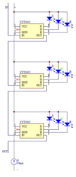 根據(jù)CYT3005單線傳輸驅(qū)動(dòng)全彩LED燈設(shè)計(jì)圖,我們可以看出,單總線傳輸設(shè)計(jì)上顯得很簡(jiǎn)單,這也是工程上最需要的傳輸方式。