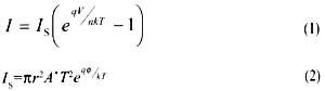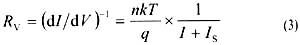 視頻電阻是伏安特性曲線在原點及其附近的斜率,它反映了勢壘高度的相對變化,決定著在零偏置或一定偏置條件下低電平射頻到直流的功率轉換效率。它可由肖特基勢壘二極管的伏安特性來表示[1]