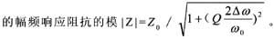 (2)諧振時,回路的等效阻抗為純電阻性質,其值最大,既z0=l/rc=qω0l=q/ω0c,式中q=