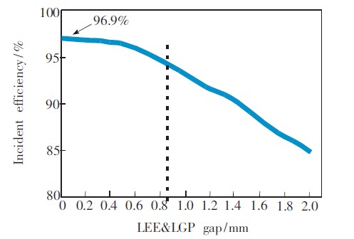 圖6 LED&LGP距離的入射效率分布曲線