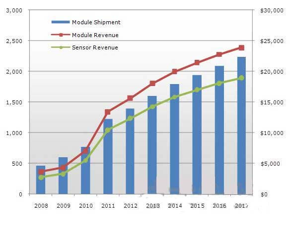 2011年的觸摸面板因智能手機市場的增長而“風光無限”。據美國FPD相關調查公司DisplaySearch預測,2011年全球智能手機面板市場與上年相比將實現90%以上的迅猛增長,并且預測在2015年之前還將以年均43%的速度增長。由于智能手機市場迅猛增長,輸入和操作所需的觸摸面板市場隨之迅速擴大。據DisplaySearch介紹,觸摸面板的整體市場規模2011年達到了12億片,超過130億美元。預計按數量計算將比上年大幅增長60%,按金額計算將大幅增長90%(圖1)。