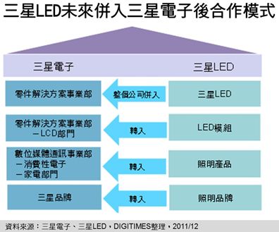林芬卉說明,為提升三星LED事業(yè)競爭力,在三星電子(Samsung Electronics)組織改造之際,未來三星LED將納入三星電子的「零件解決方案事業(yè)部」,且LED上、中、下游產(chǎn)業(yè)鏈與三星電子各事業(yè)部皆有合作關(guān)系,藉由共享資源方式以發(fā)揮綜效。