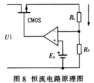 本系統(tǒng)將大電流CMOS管作為電子開關(guān),并采用恒流電路對(duì)LED陣列進(jìn)行恒流供電,使LED燈可以長時(shí)間穩(wěn)定工作。下面介紹恒流實(shí)現(xiàn)方法。