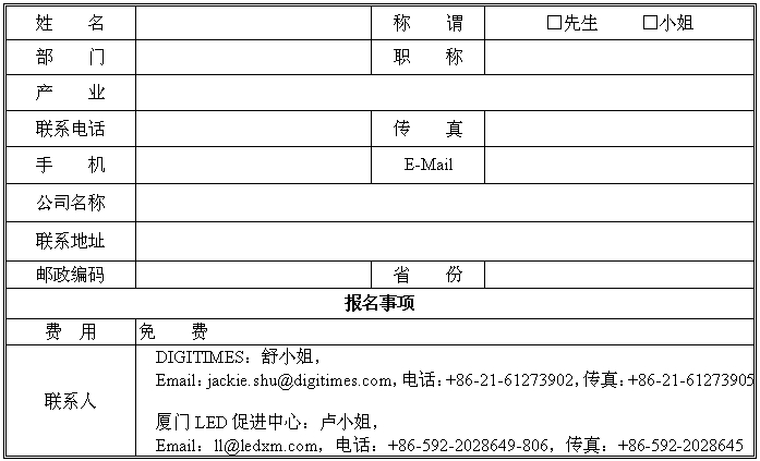 報(bào)名方式: Email報(bào)名,傳真報(bào)名