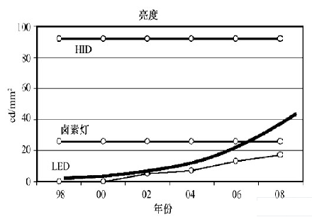 這種LED 新光源使得汽車燈具的風格設計和造型布置具有空前的靈活性,且LED 光輸出功率密度在技術上已能夠與HID 燈具匹敵。因此一旦能降低成本并在技術上實現量產,它極有希望把現存的其他照明技術淘汰出局而獨霸車燈市場。