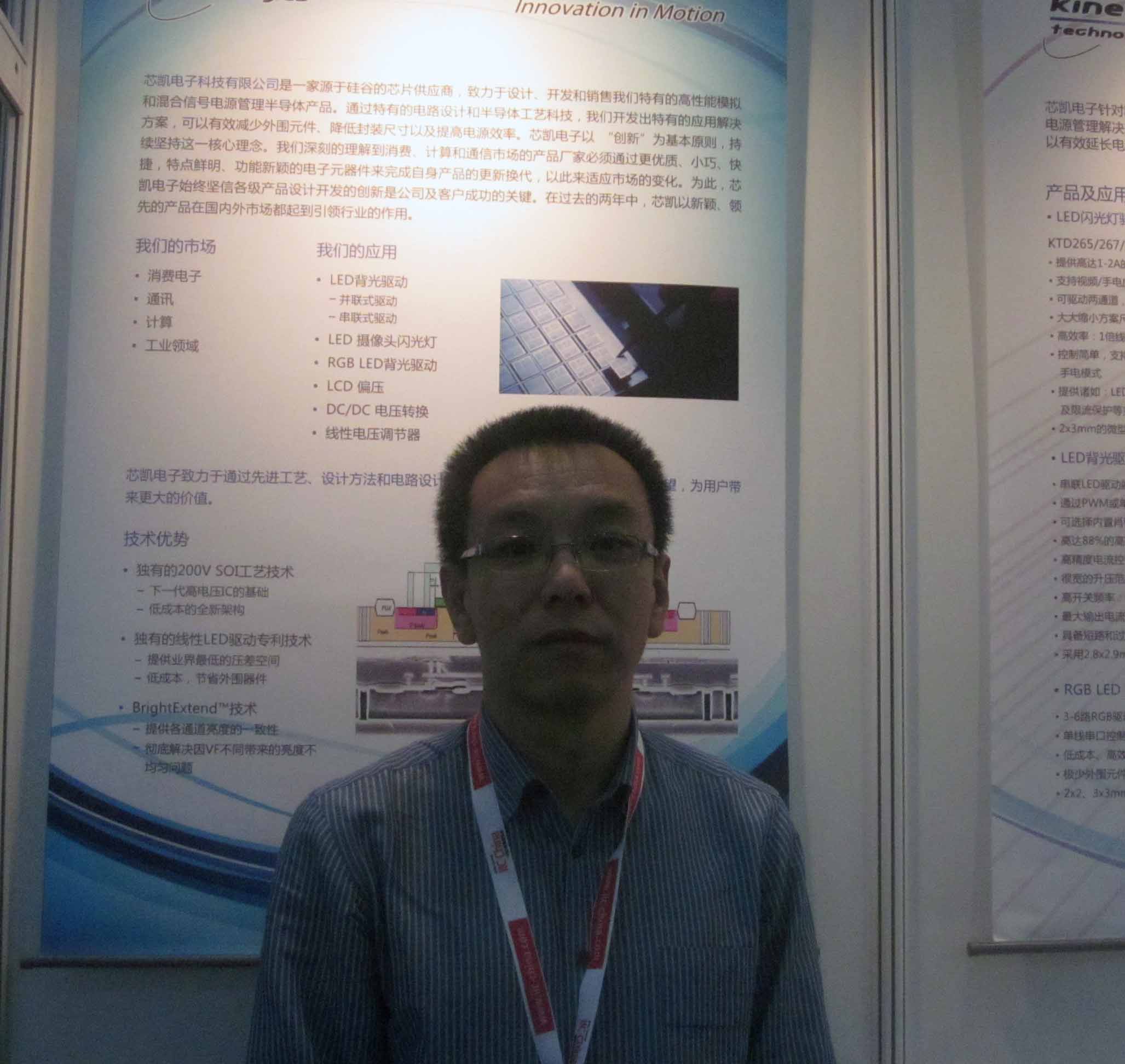 芯凱電子針對照明市場的各種需求,還推出了各款LED照明領域的驅動產品,包括有KTD353和KTD590驅動器。據劉宏介紹,他們公司在LED照明領域的產品,覆蓋了小、中、大功率的應用的驅動產品。劉宏認為影響LED燈具壽命的就是LED驅動電源是采用無電解電容驅動方案還是電解電容驅動方案。目前說,無電解電容驅動器在設計過程,技術需求比較高,過程比較復雜,他們工程師也有在這個領域上努力。為適應各種客戶的需求,不論是電解電容驅動器還是無電解電容驅動器他們都有供應。劉宏認為,產品是一種技術的呈現形式。他們的工程師要做的就是掌握好核心的技術,這樣他們做出產品性能就好,可靠性也強,不怕打價格戰。他們要做的產品都是要滿足于客戶的實際需求以及市場的發展需要的。