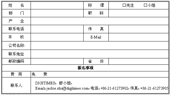報(bào)名方式: Email報(bào)名,傳真報(bào)名