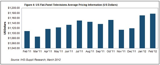 據IHS iSuppli公司的美國電視價格與規格追蹤報告,盡管有上年結轉的庫存,但由于這些庫存具備高端功能,2月份美國平板電視價格連續第三個月上漲。
