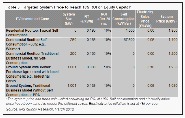 在FIT調整之后,IHS iSuppli公司的計算結果顯示,如果系統價格為1850歐元/kW,即使取消自我消費獎勵,德國住宅系統仍能達到10%的股本(20%)投資回報率。由于德國市場的價格已經降到這樣的水平,住宅領域將繼續提供有吸引力的投資條件,盡管政府降低FIT。