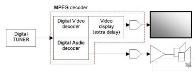 由于用于顯示的視頻信號(hào)處理越來(lái)越復(fù)雜,輸入和顯示器之間的視頻延時(shí)也越來(lái)越長(zhǎng)。這就要求電視機(jī)能延時(shí)音頻信號(hào),使之與視頻信號(hào)保持同步。