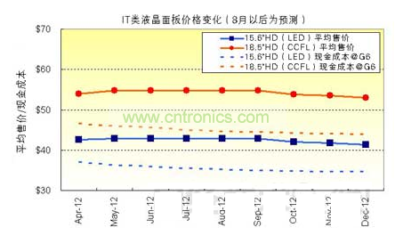 圖1:IT類液晶面板價(jià)格變化(8月以后為預(yù)測(cè))