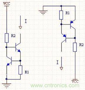 用兩個晶體三極管,也可以構成一個恒流源(圖6a)。