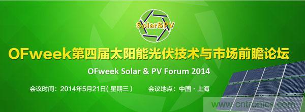 2014年5月21日,由OFweek主辦、OFweek太陽能光伏網(wǎng)承辦的“OFweek Solar & PV Forum 2014太陽能光伏技術(shù)與市場前瞻論壇”將在上海隆重舉行。本次峰會擬邀請杜邦、MANZ、特變、山億新能源等知名企業(yè)專家、高層,以及政策決策機(jī)構(gòu)、行業(yè)組織機(jī)構(gòu)嘉賓主講太陽能電池轉(zhuǎn)換效率的技術(shù)、CIGS薄膜電池技術(shù)與投資、光伏電站項(xiàng)目投資收益率(IRR)等重大議題。同時OFweek行業(yè)研究中心太陽能光伏領(lǐng)域分析師團(tuán)隊(duì)針對2014年中國光伏電站領(lǐng)域的建設(shè)熱點(diǎn)和投資機(jī)會共同組織本次論壇,給業(yè)界及希望在光伏領(lǐng)域?qū)ふ倚聶C(jī)會的投資方以明確的分析和投資指南。