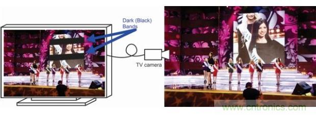 圖 9. 電視攝像機(jī)拍攝另一個(gè)電視屏幕引起的黑色條帶