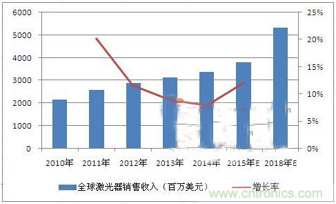 2012年,激光器從科學(xué)創(chuàng)新到工業(yè)"工具"取得進展,并認(rèn)為現(xiàn)在是時候考慮開拓一些新型應(yīng)用領(lǐng)域了,這些新興領(lǐng)域可能改善激光器市場長久以來"緩慢而穩(wěn)定"的5%--6%年復(fù)合平均增長率(CAGR),使其以兩位數(shù)速度增長。